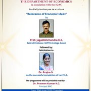 A talk on Relevance of Economic Ideas and Felicitation to Dr Prajna S:Department of Economics