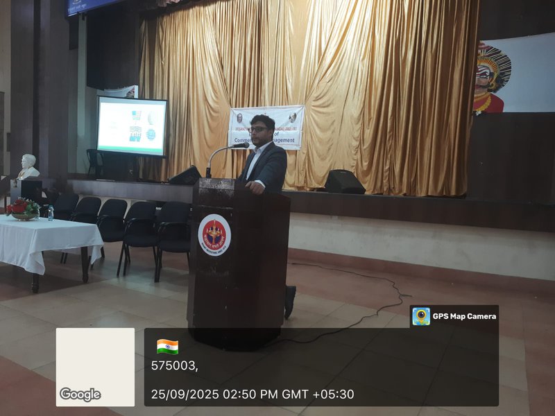 On 21st August 2025, a talk on business analytics was organized to the students of 3rd year B.Com and BBA, resource person for the same are Mr. Anoopu Sanil, Director career Ladder Technologies and Mr. Deepak , Executive Director of career Ladder Technologies. Students were informed about the different AI tools and their use in Corporates.