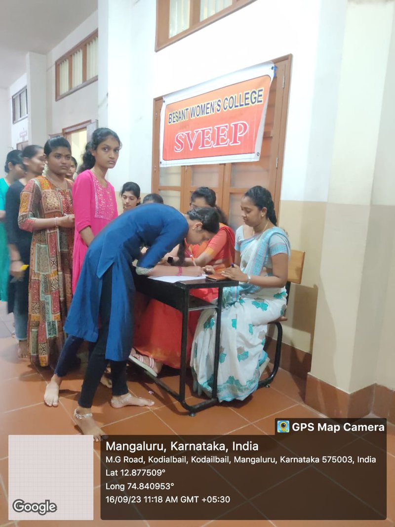 The College SVEEP (Systematic Voters’ Education and Electoral Participation) Committee actively participated in the Students’ Union Election held on 16/09/2023. The committee played a vital role in promoting electoral awareness and encouraging informed voting among students. It rendered valuable services throughout the election process, ensuring smooth and fair conduct. Their efforts significantly contributed to increased student engagement and the successful election of student leaders for the academic year 2023-24.