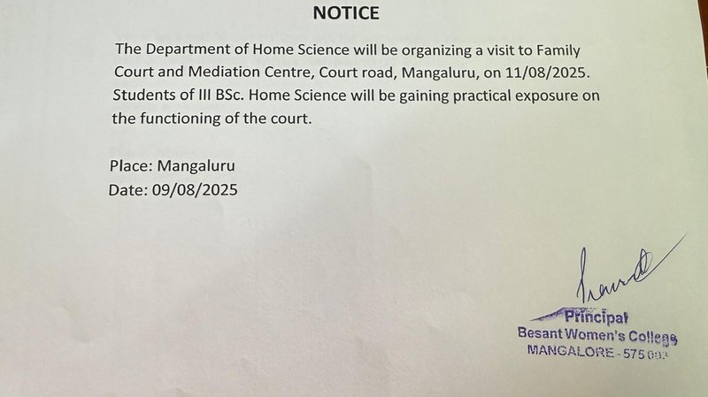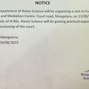Besant Women’s College had organized a visit to Family Court by the department of Home Science on 11/08/2025. III BSc.Home Science students got the opportunity to witness the live session and also gathered information on functioning of the court and the Mediation Centre.