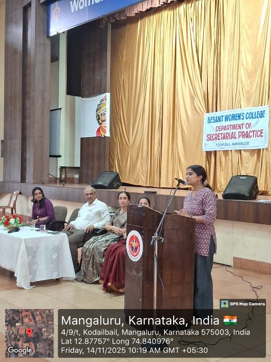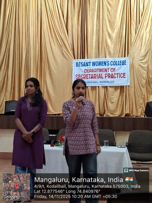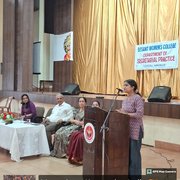 Dr. Praveen Kumar K.C., the Principal presided over the programme. Mrs. Shaila Kamath welcomed the gathering and introduced the resource persons. Mrs. Ranjini, HoD, read out the names of winners in Report Writing competition and prizes were distributed. The students who have contributed their service to the department and excelled in sports were honoured. Ms. Kushi of I BA compered the programme. Ms. Vaishnavi UN of II BA proposed Vote of Thanks.