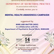 The department of Secretarial Practice in association with IQAC organised ‘Mental Health Awareness Campaign’ in collaboration with ‘Mind and Matter (NGO) and the Department of Psychiatric Social Work, NIMHANS.