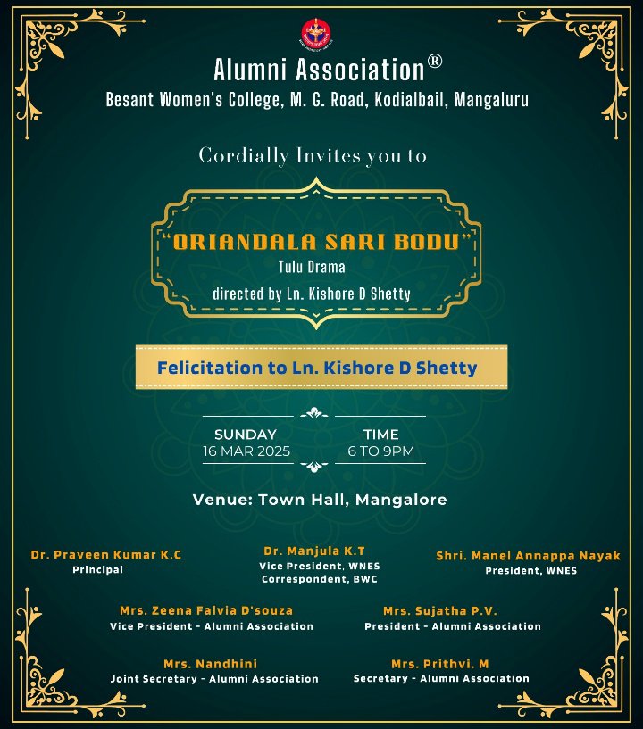A Tulu drama program was organized on 16th March 2025 at Town Hall, Mangalore by the Alumni Association of WNES.