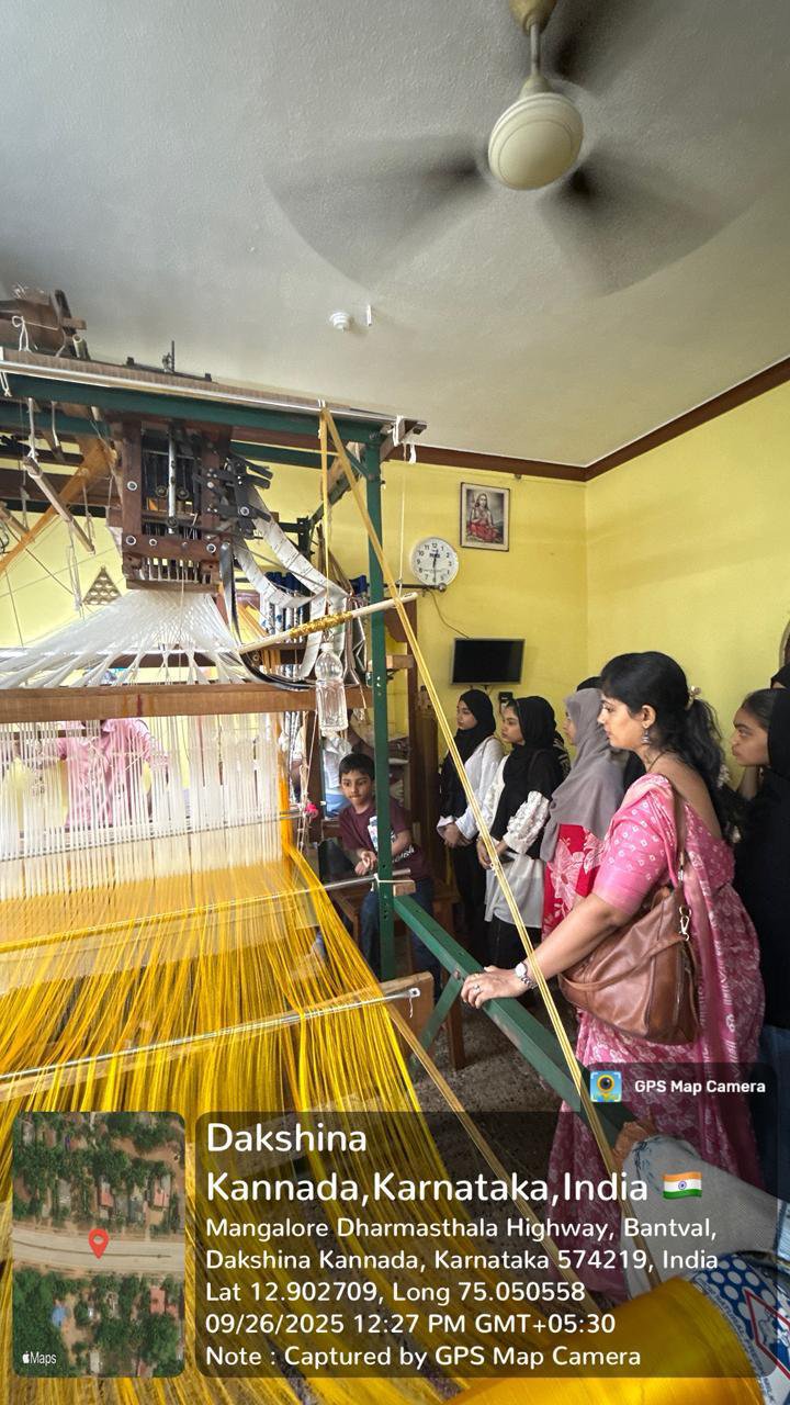 Besant Women’s College had organized a visit to Madhu Silks, a weaving unit at Jakribettu, Bantwal, B.C.Road by the department of Home Science on 26/09/2025. I and III BSc.Home Science students got the opportunity to witness the handloom weaving and also gathered information on creating different designs.